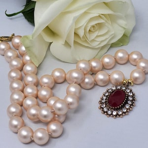 Single Strand Magnesite and Sea Shell Beads Necklace