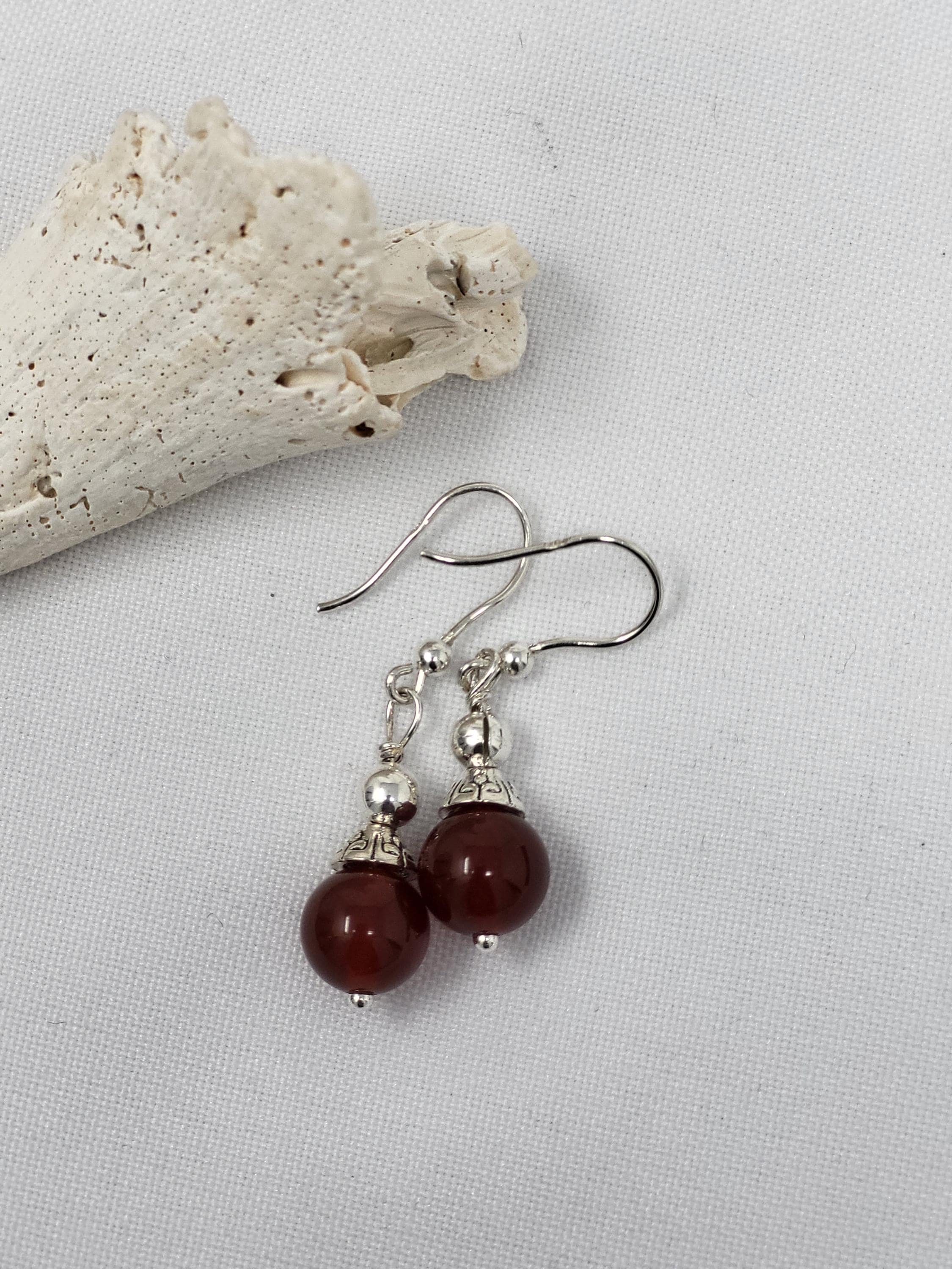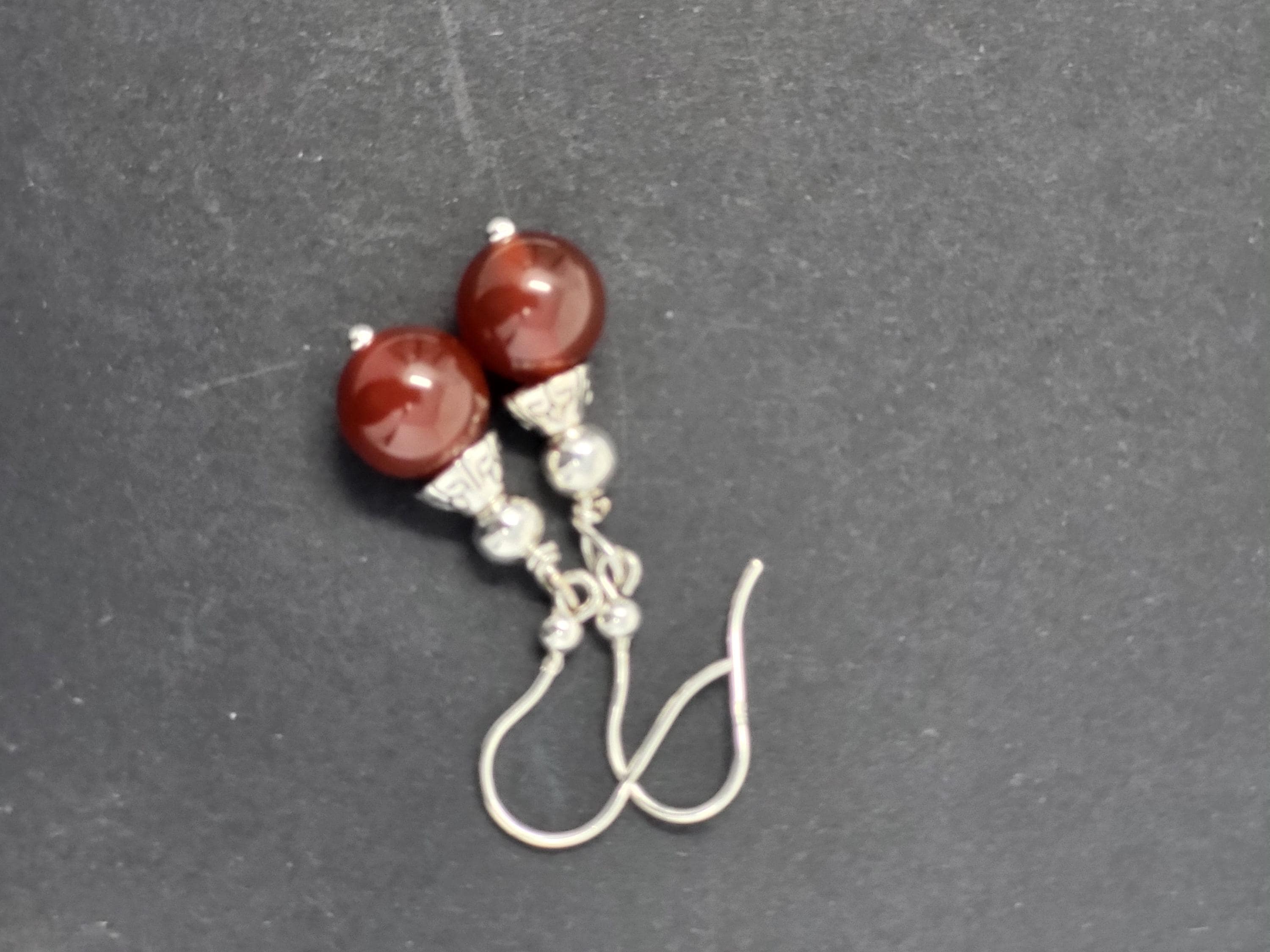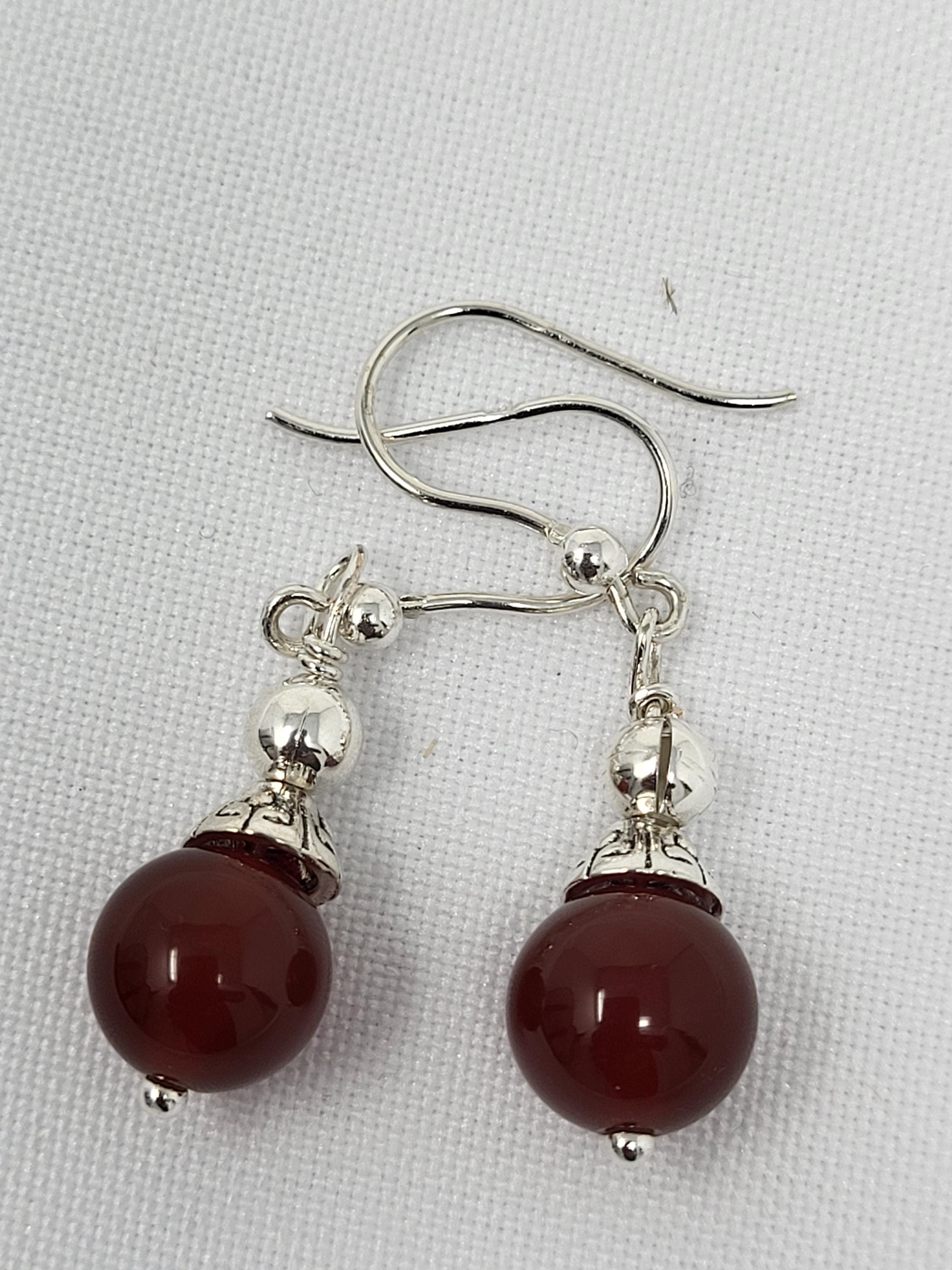 Dangle 1 inch earrings with round carnelian and silver hook. 1.0 length.